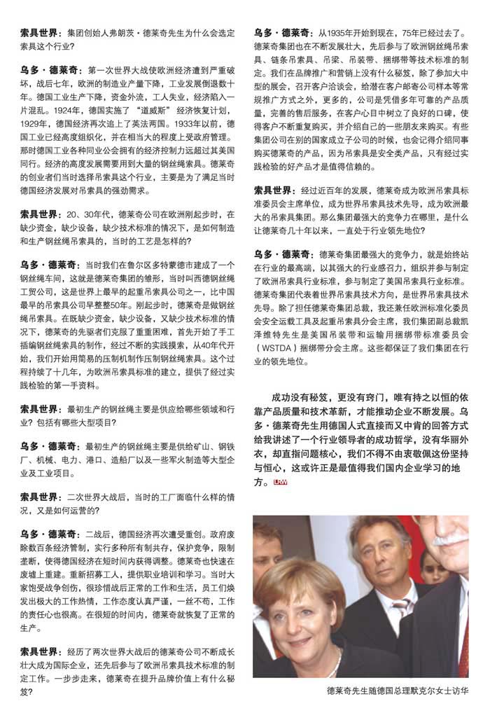 德莱奇集团总裁答《索具世界》记者问